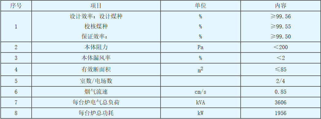 (1)在机组正常运行条件下测试,A列除尘器除尘效率为99.50%,漏风率为1.25%,根据除尘器设计值,除尘效率和漏风率均达到设定值。