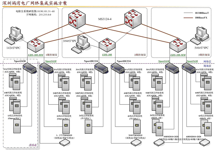 另外,每台炉由于改造时间不同,每一台炉都由自己独立的一套IPC系统进行控制。为了便于运行人员操作和管理,需要把6台炉的IPC系统集中到一台工控机上进行监控和实时数据查看,实现6台炉IPC系统整体集中控制,实现电厂减员增效的目的。