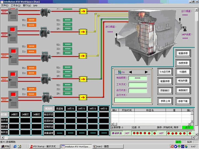 从目前妈湾电厂1#~6#炉电除尘电控设备及IPC系统使用情况看,1#~4#炉电加热部分未进行下位机设备改造,不能与上位机进行远程通讯,因此,IPC系统不能实现对电加热设备的实时数据查看和远程监控功能。